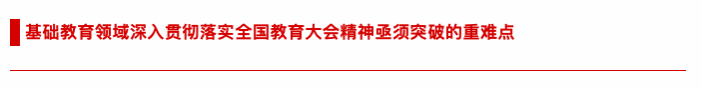 落实全国教育大会精神、建设教育强国,基点在基础教育。随着《纲要》及三年行动计划的发布,深化教育综合改革成为突出任务。当前基础教育领域需要集中突破五个方面的重难点问题,以新思维、新方法推动实践创新。